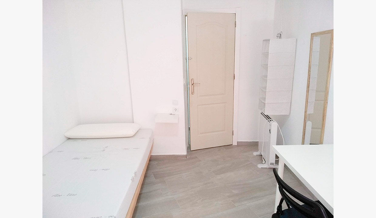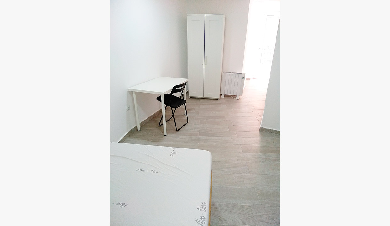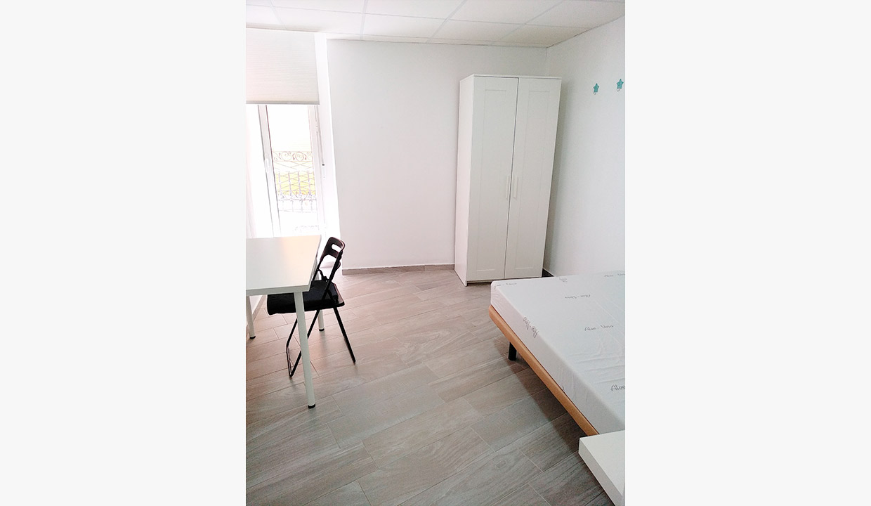 La vivienda, en particular, dispone de 3 habitaciones, un cuarto de baño, un salón con balcón al exterior y cocina totalmente equipada (vitrocerámica, microondas, nevera, lavadora, horno, televisor…). Todas las habitaciones tienen cerradura independiente, disponen de balcón con vistas al exterior y están equipadas con cama y colchón de 1’05 o 1’35 m, armario, escritorio y silla.