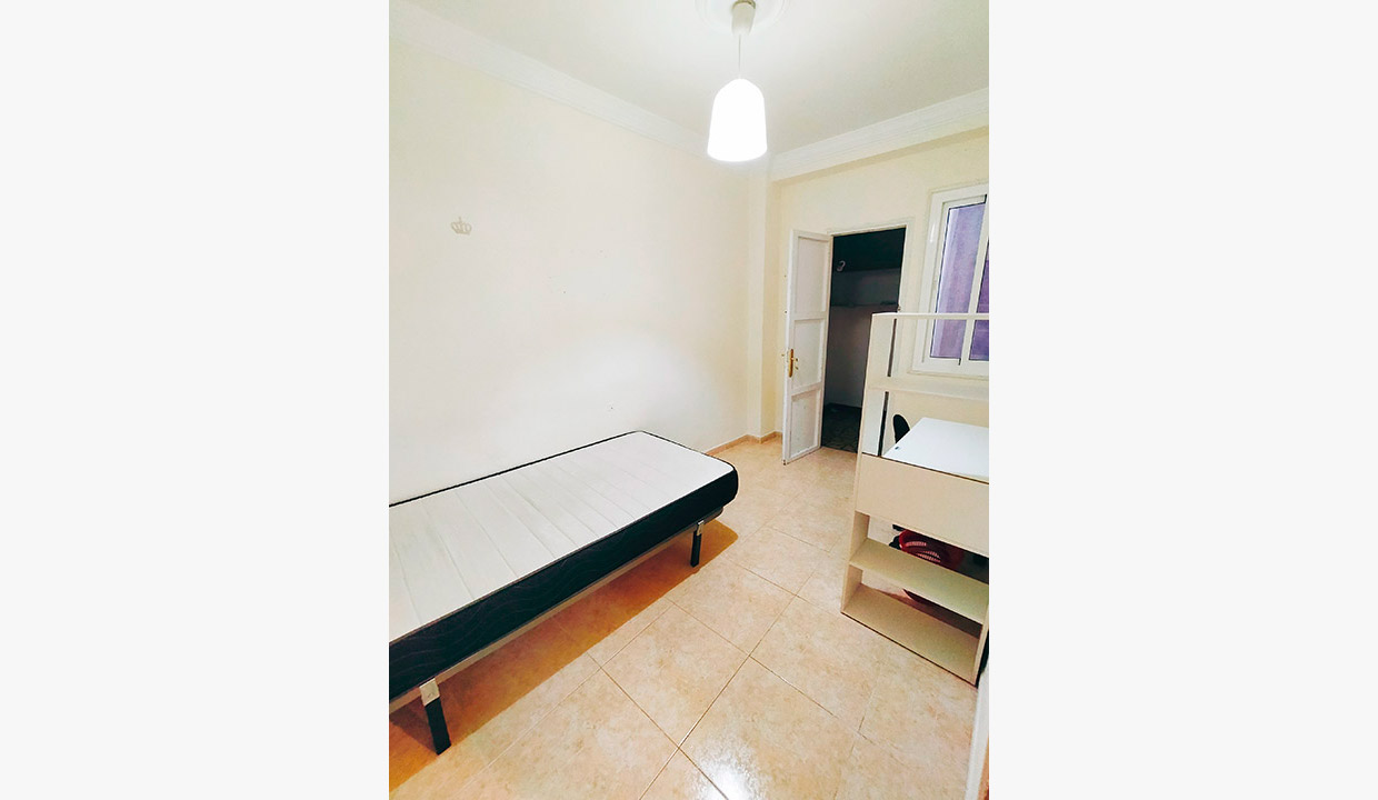 La vivienda dispone de 3 habitaciones (todas están equipadas con cama y colchón de 1’05 m, mesita de noche, armario, escritorio y silla.), un cuarto de baño, un salón muy bien iluminado con balcón al exterior y cocina independiente totalmente equipada (vitrocerámica, microondas, nevera, lavadora, lavavajillas, horno…). El piso también dispone de un termo eléctrico para la calefacción del agua y televisor.